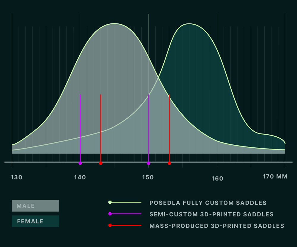 Most 3D-printed saddles offer presets. Joyseat is generated from your inputs and your imprint — width, shape, and support zones included.