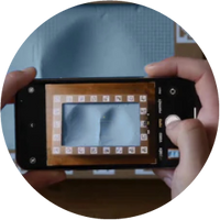 Carefully slide the butt imprint back into the Smiling Butt Kit box with the imprint facing up. Close the box and place it on a table you can access from all sides. Now snap a photo of the box with the imprint from the top view and from 8 positions (as indicated in the photo). Stand next to the table and place your hands with the phone slightly above waist level. From there, you can start taking pictures.